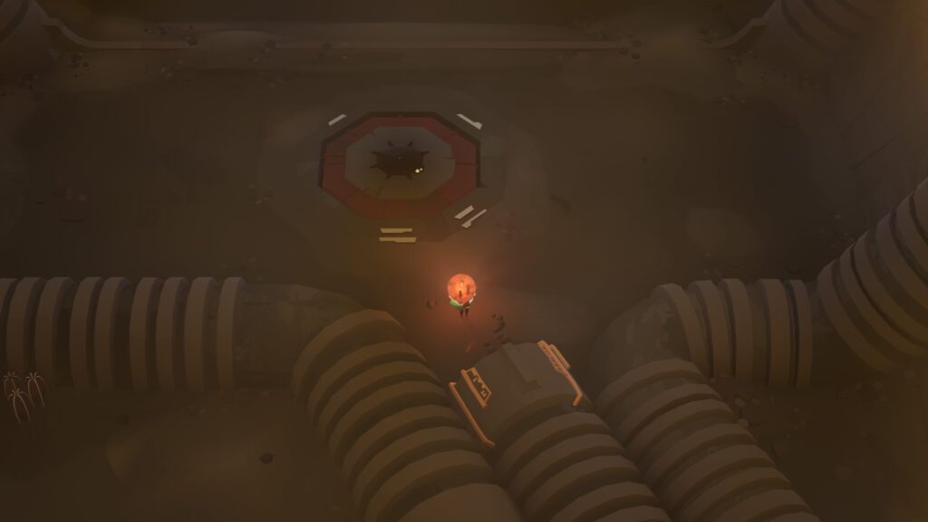 赤オーブを取って南西の橋を渡り、ジャンプ台を2つ越えて地下へ降りると南側にパイプが3つ並んだ広場にでます。中央のパイプは中に入れるので、通り抜けた先に月の先祖がいます。